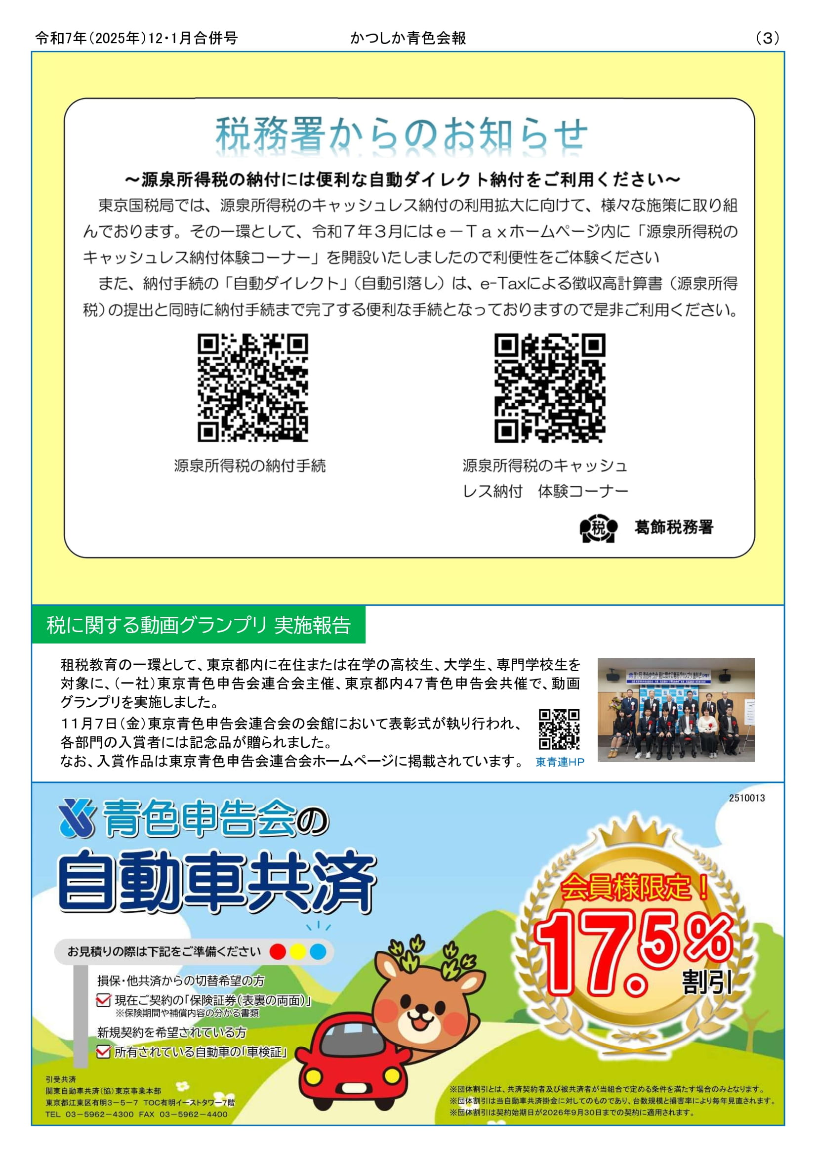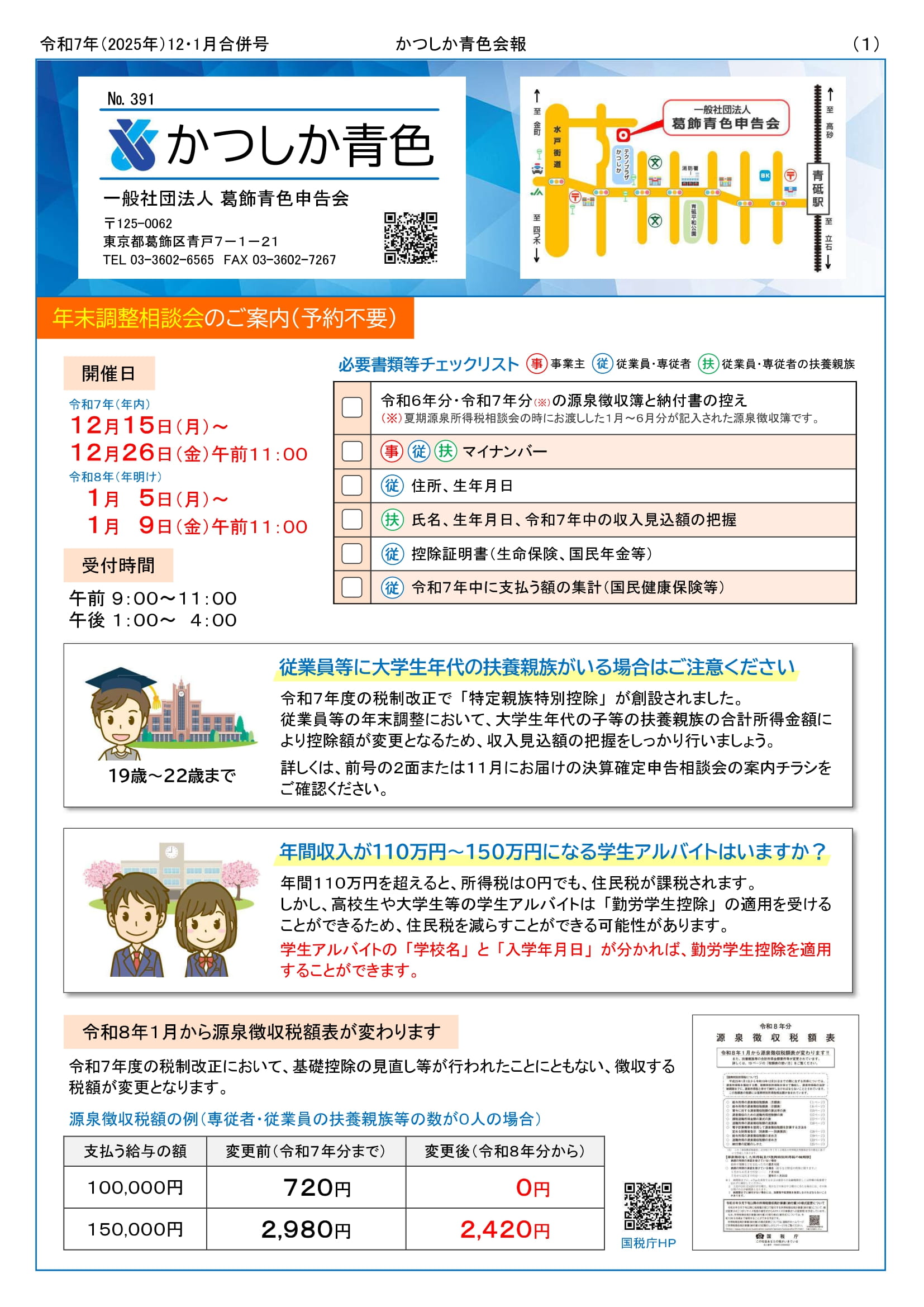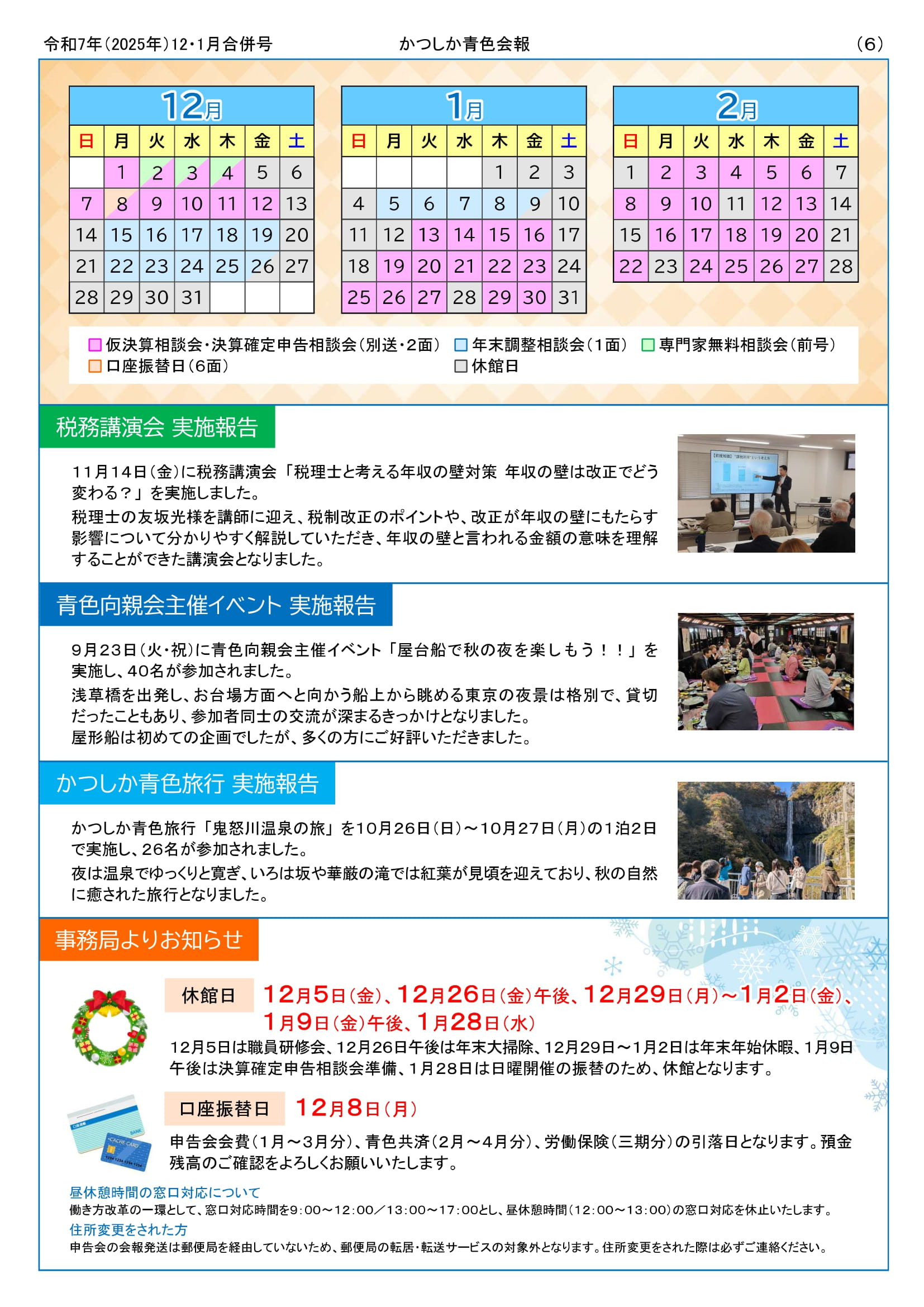 税制改正や相談会のご案内、福利厚生制度やイベントの紹介等、本誌にてお知らせをしております。
