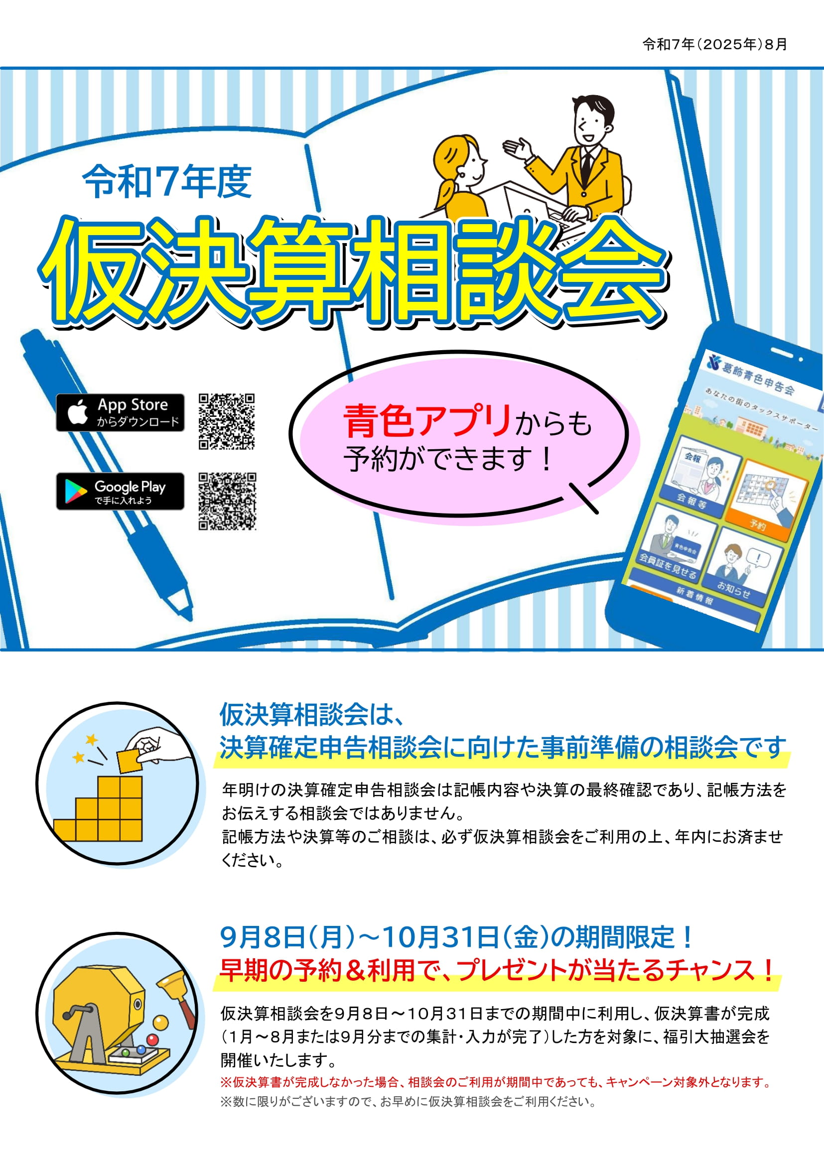 詳細は「仮決算相談会」のチラシをご確認ください。