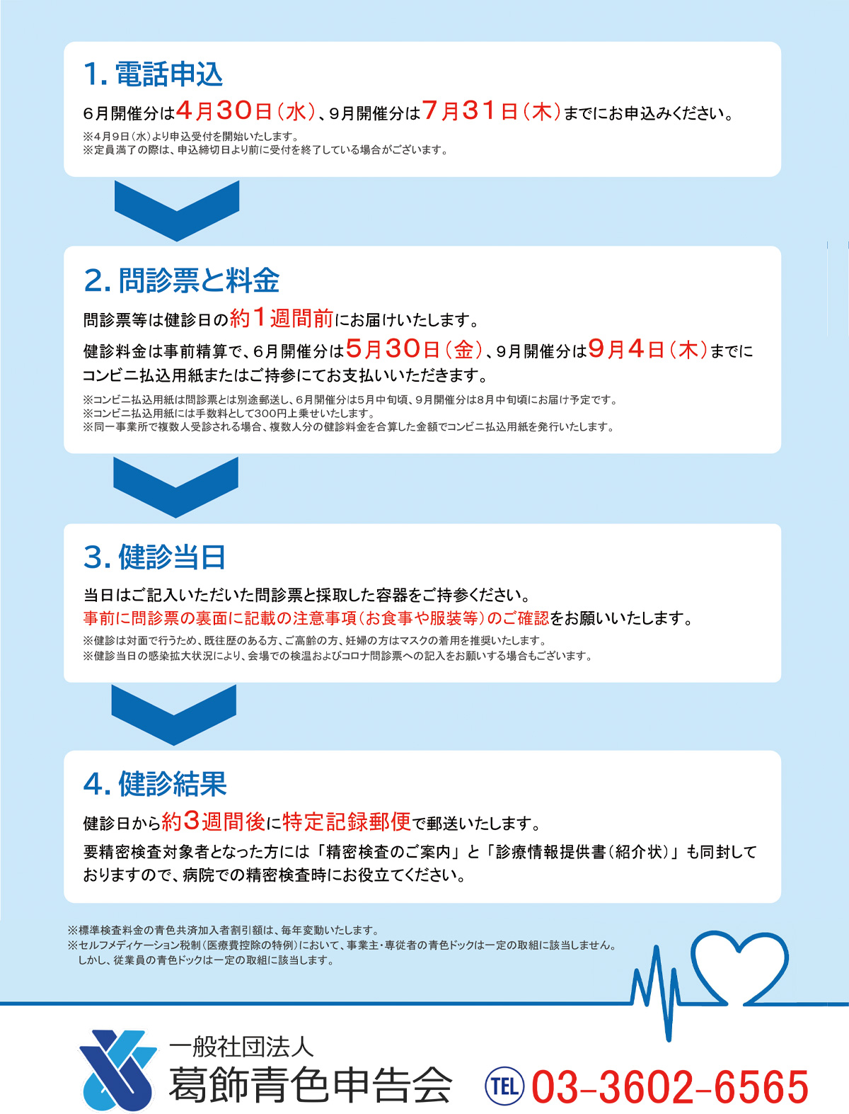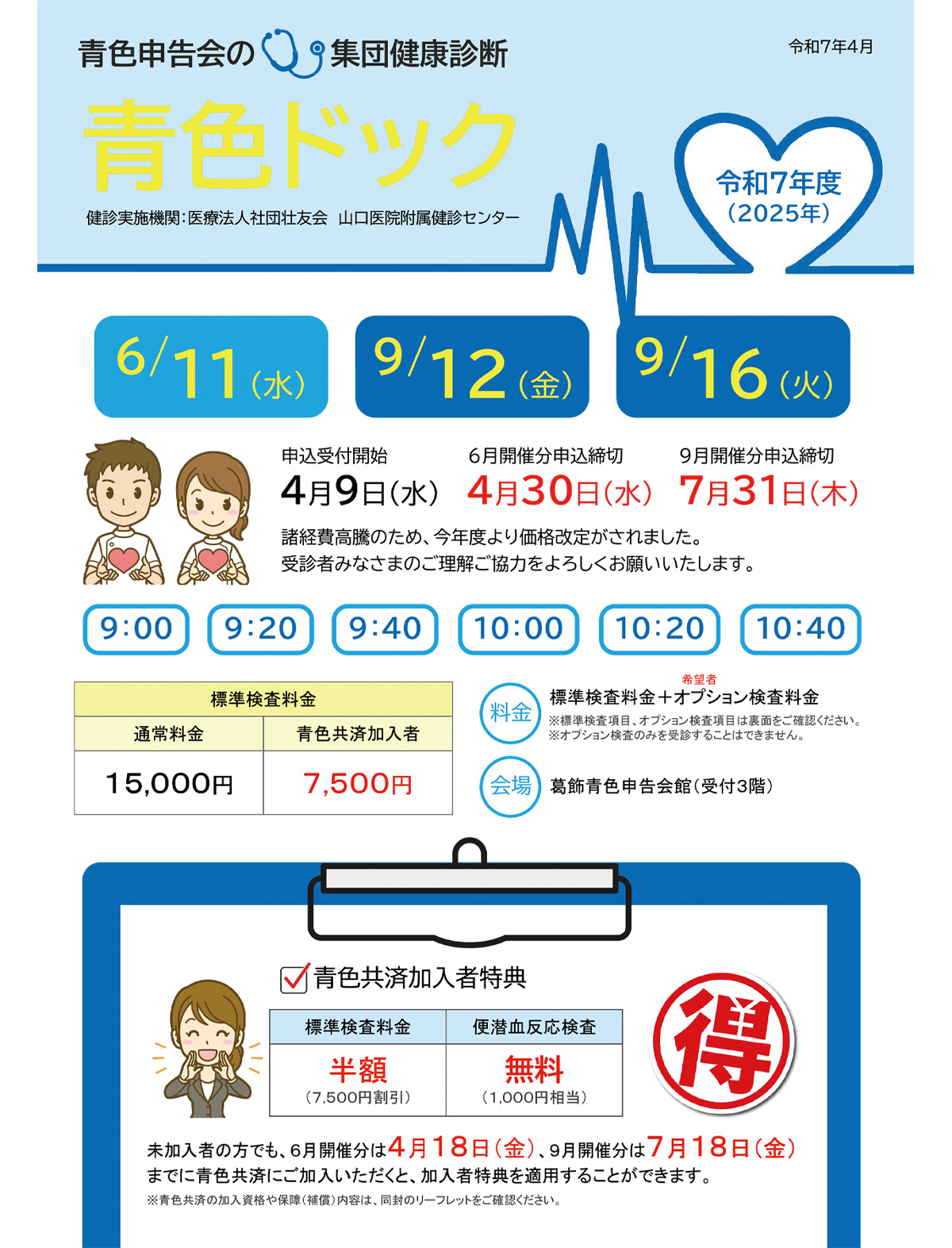 - 青色ドック(葛飾青色申告会で行う集団健康診断)を割引料金で受診できます!